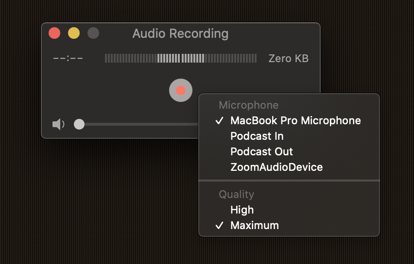 Auf dem Mac: Öffne Quicktime > Datei > Neue Audioaufnahme